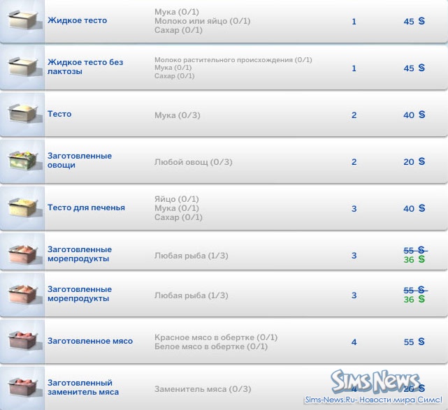 Заготовленные ингредиенты в The Sims 4 Кулинарные страсти