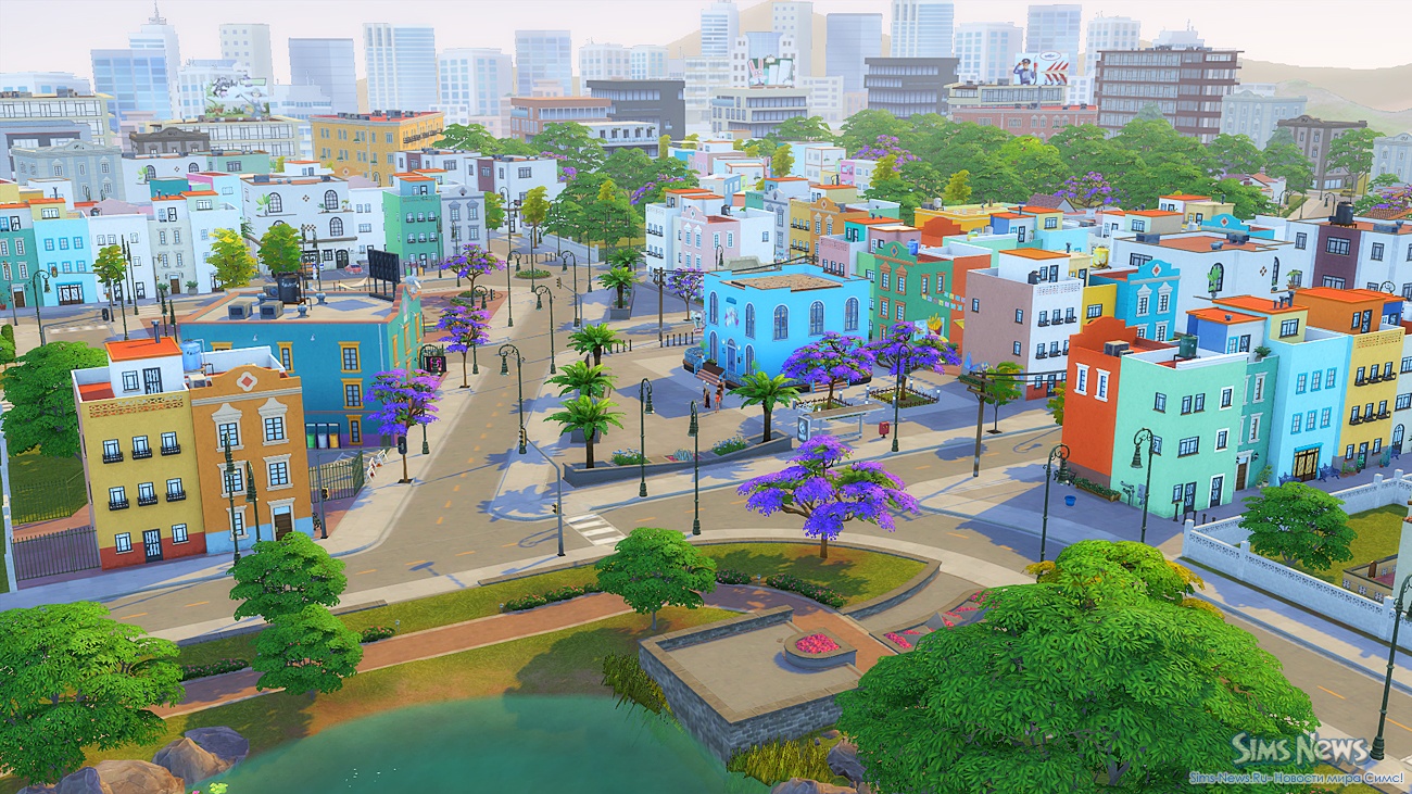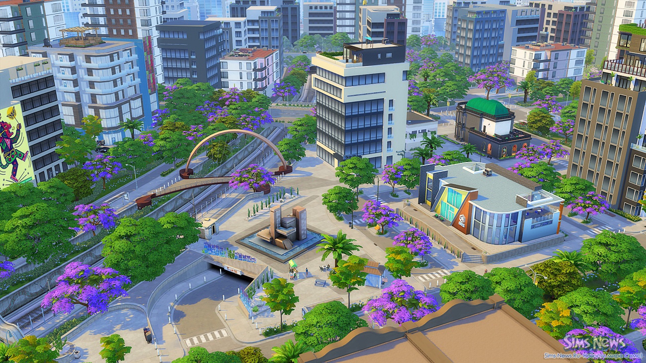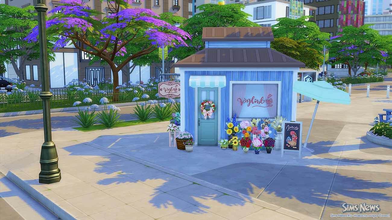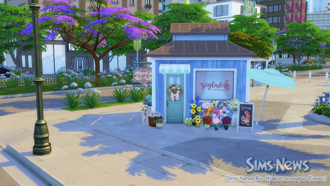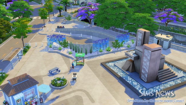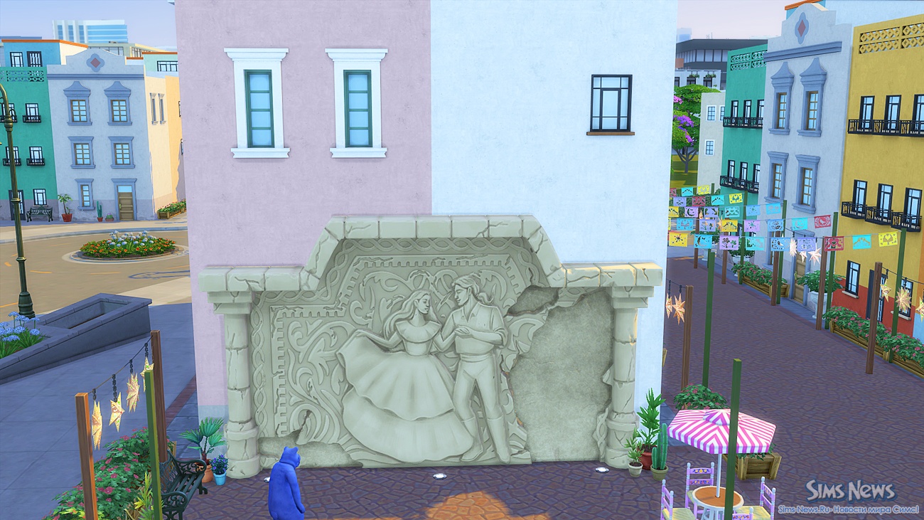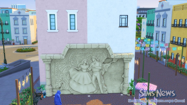 Прогуливаясь по улочкам, ваши симы смогут полюбоваться огромной фреской на стене одного из зданий, освежиться у современного фонтана, заглянуть в магазин цветов и подарков перед свиданием или перекусить в новом киоске стритфуда.