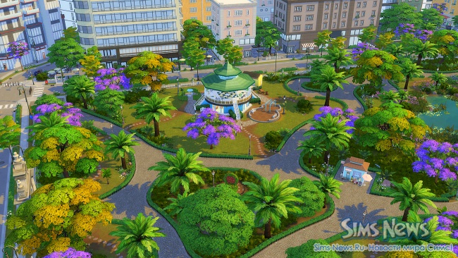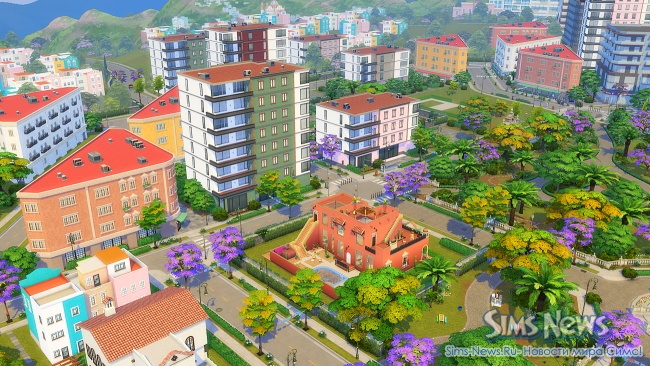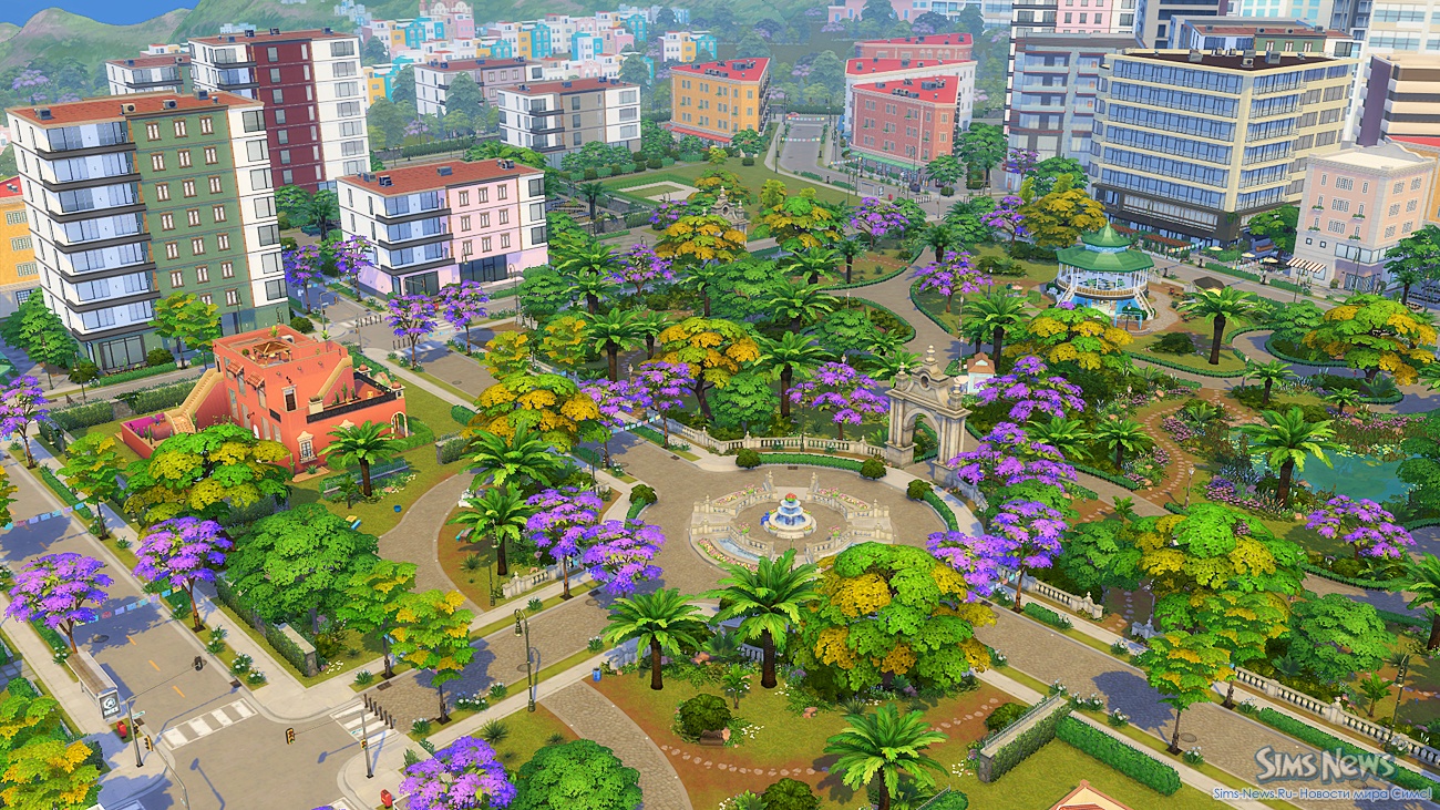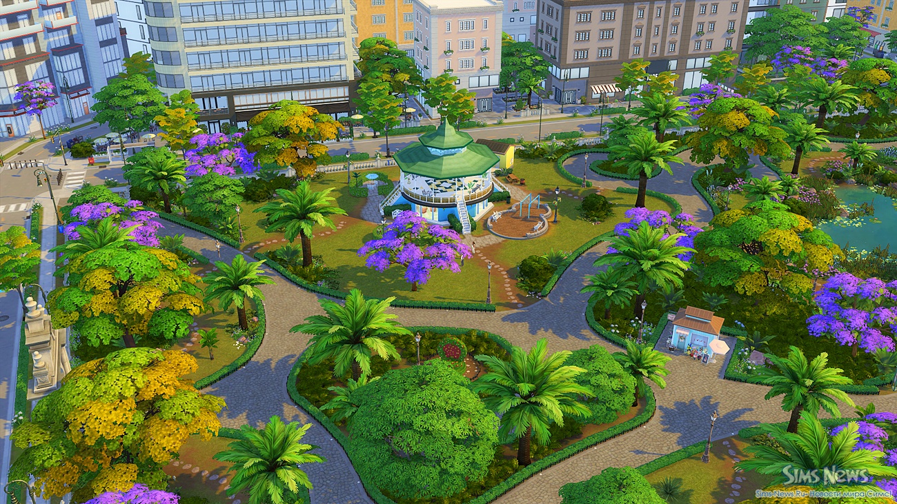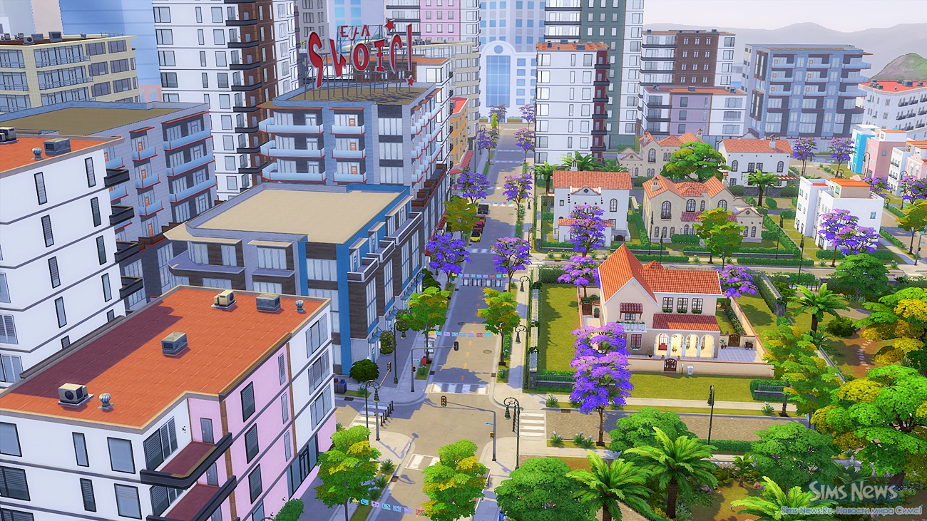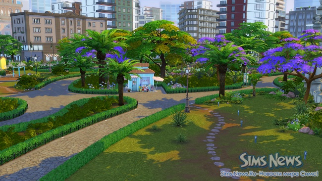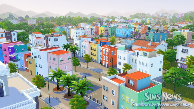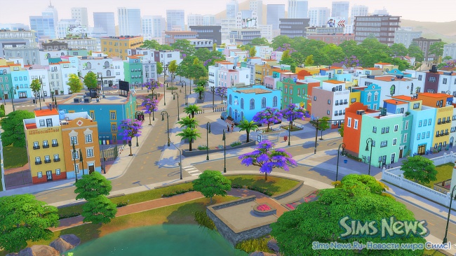 Прогуливаясь по улочкам, ваши симы смогут полюбоваться огромной фреской на стене одного из зданий, освежиться у современного фонтана, заглянуть в магазин цветов и подарков перед свиданием или перекусить в новом киоске стритфуда.