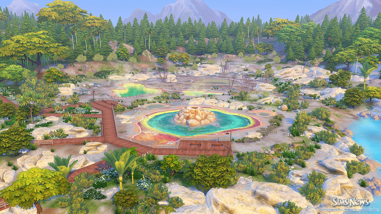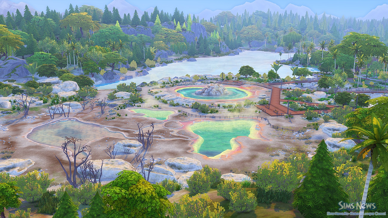 Это место для активного отдыха и исследования.Здесь ваши симы найдут интерактивные участки и природные объекты: