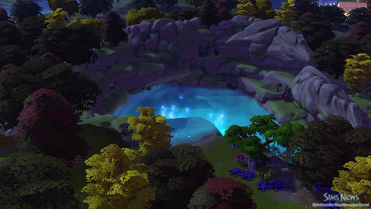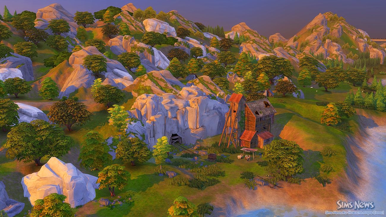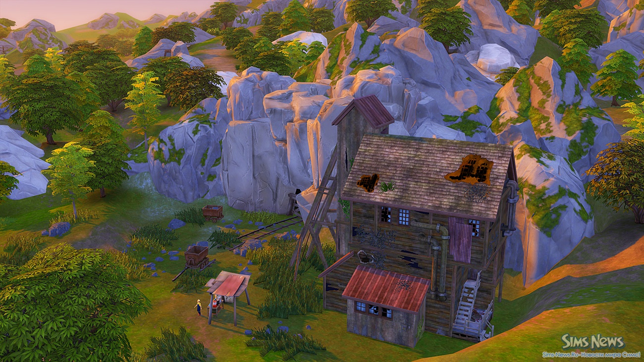 - Не жилые участки — Электрическая лагуна, Золотой рудник Скуппа и Долина кристаллов с местами для квестов. Здесь ваши симы могут исследовать полуразрушенные здания, искать кристаллы и общаться с местными жителями, чтобы собрать коллекционные предметы.
