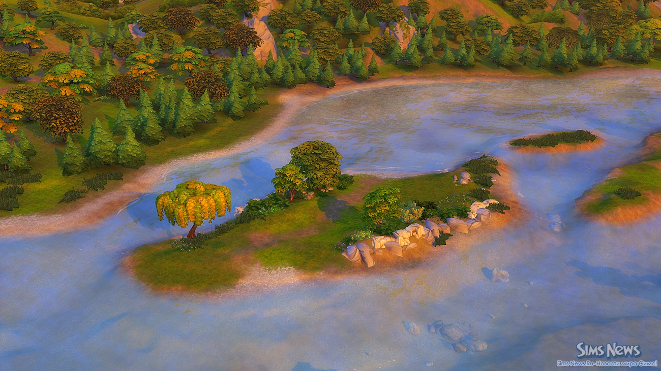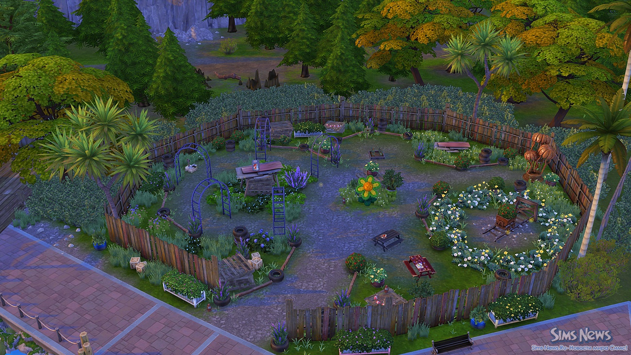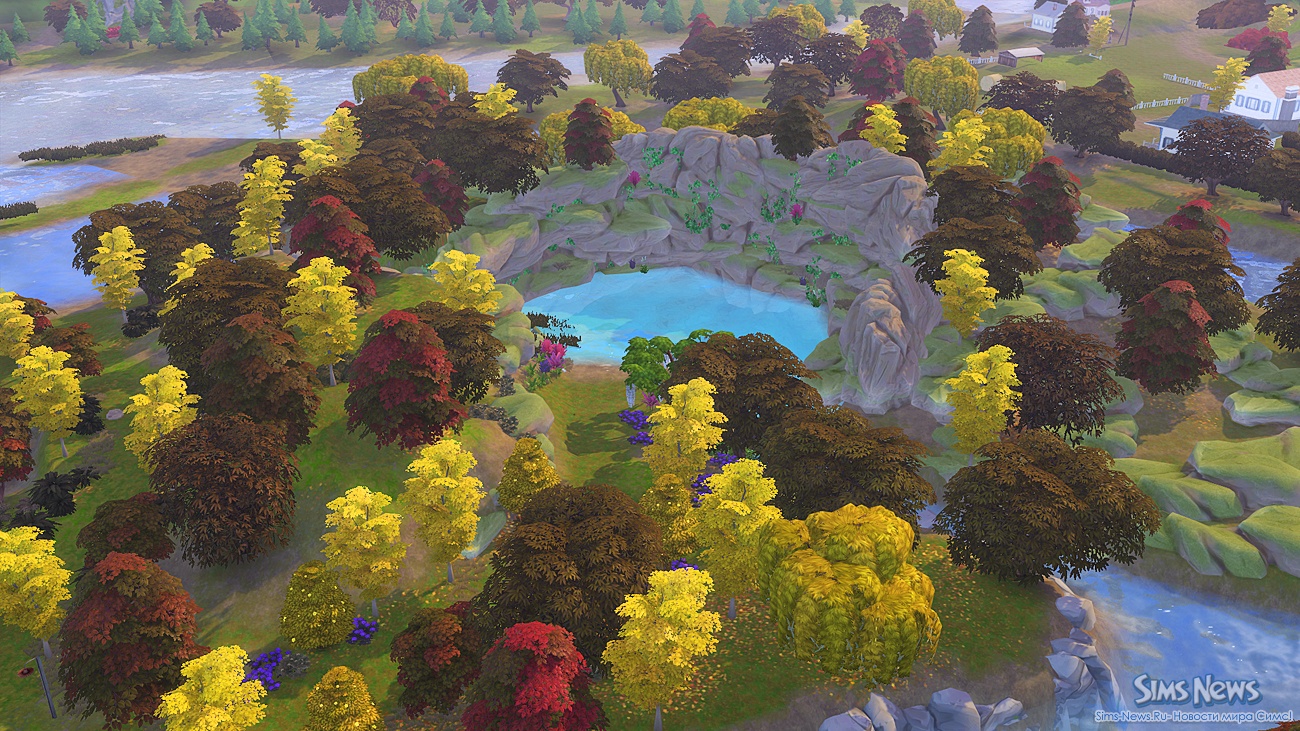 Здесь ваши симы найдут интерактивные участки и природные объекты: