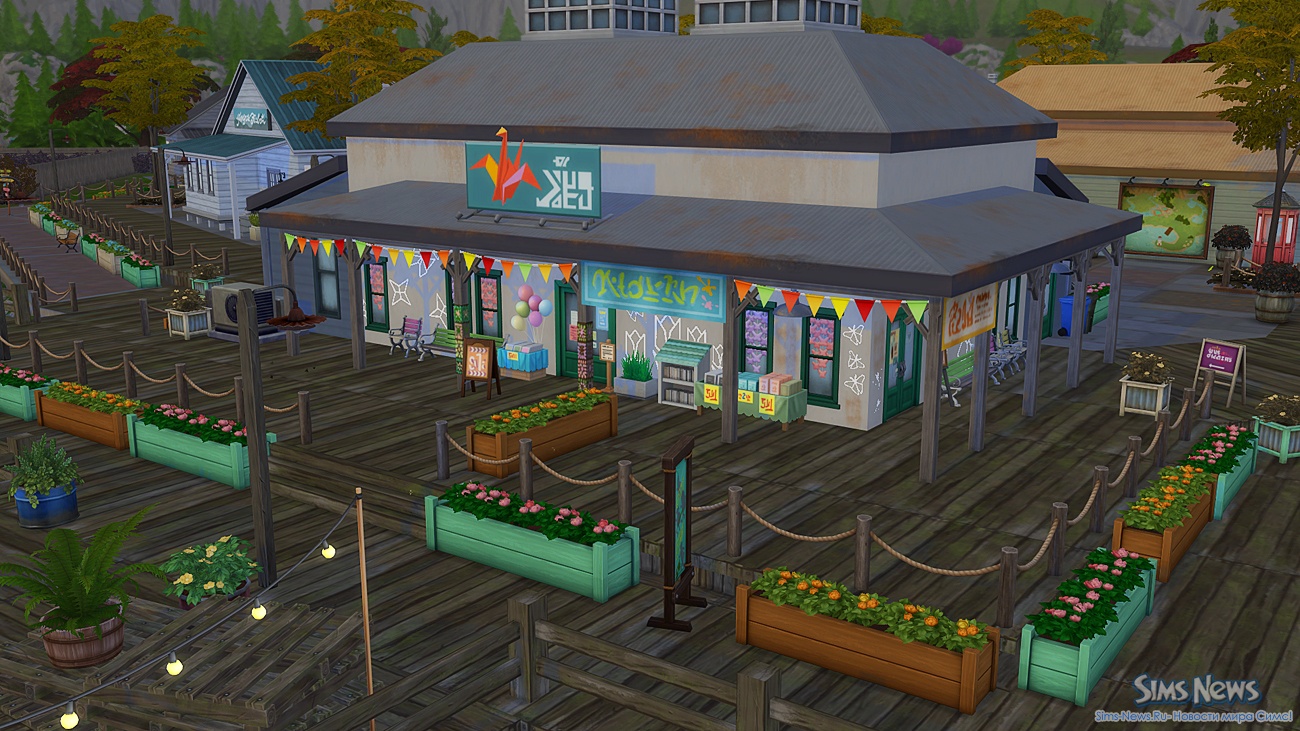 На площади вы встретите интерактивную карту города, а рядом можно заглянуть к симу-рассказчику, который поведает интересные истории и поможет раскрыть местные тайны. Это место словно создано для того, чтобы ваши симы исследовали его шаг за шагом, ловя каждый нюанс жизни Гибби-Пойнт и впитывая атмосферу района.