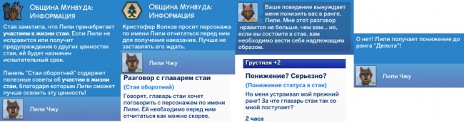 Ранг растёт довольно быстро, если жить по ценностям стаи, если игнорировать — появятся предупреждения, испытательный срок… и разговор с вожаком, который иногда заканчивается понижением в ранге или изгнанием.![]()