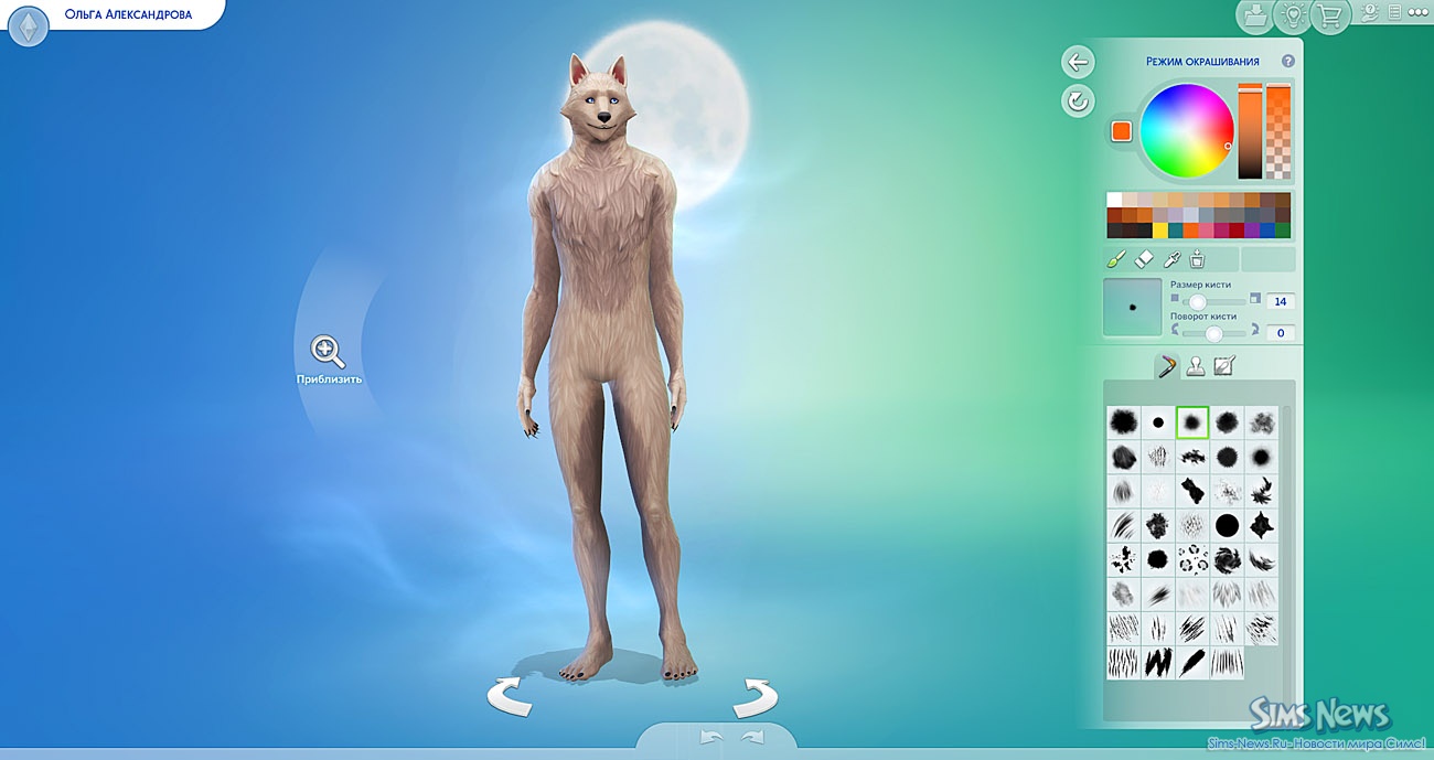Для окраса шерсти используются инструменты из дополнения «Кошки и собаки»— можно буквально «рисовать» узоры. Одежда тоже настраивается: можно носить человеческую одежду (есть тематические рваные комплекты), можно отказаться от неё полностью, всё зависит от того, хотите ли вы «цивилизованного» оборотня или дикого хищника. Создали — и можно сразу начинать игру без лишних сложностей.